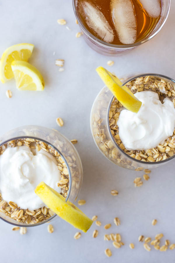 And while these Arnold Palmer Overnight Oats are a wee bit more labor-intensive than your normal weekday breakfast, I mean, look at them. It’s iced tea and lemonade oats!! Do it, friends, and enjoy one of your new favorite summer breakfasts!