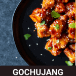 A spicy, smoky, sweet sauce to top your perfect crispy baked tofu nuggets! This sauce uses the Korean fermented chili pepper paste, gochujang! It’s vegan and oh-so good.