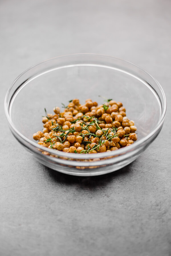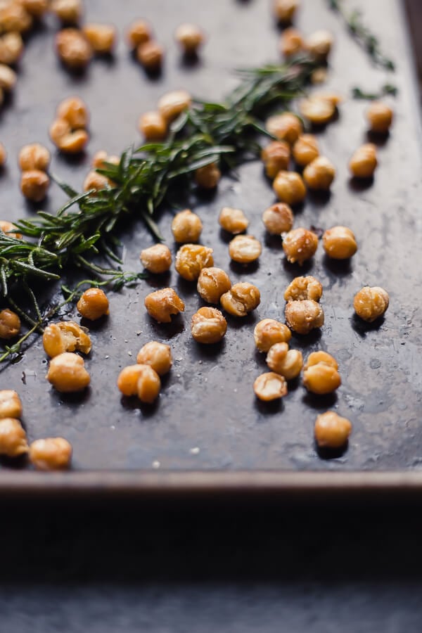PLUS! We’ll fry up a bit of rosemary and thyme before we fry up the chickpeas to flavor the oil and to add to the chickpeas when we serve. Fried herbs are the best (see here and here for proof!), and you’ll love the fresh, gourmet flair this simple step gives this snack or app!