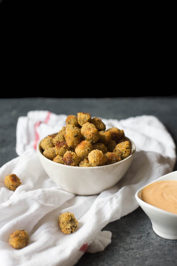 These baked olives are EVERYTHING. I totally wanted to try them deep-fried after reading this post, but holy moly they’re so amazing baked! I used green olives this time but can’t wait to try it with other types. This recipe has launched me on a mission to bake ALL the olives lol! I used them on the Mediterranean Falafel Salad recipe which was killer – can’t wait to try them with this dip!