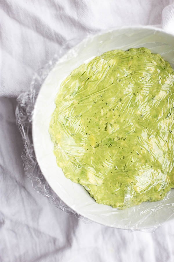 Pro tip: Make sure you use a good bit of citrus in your guac recipe. The acid from the citrus will help slow down the browning process.
