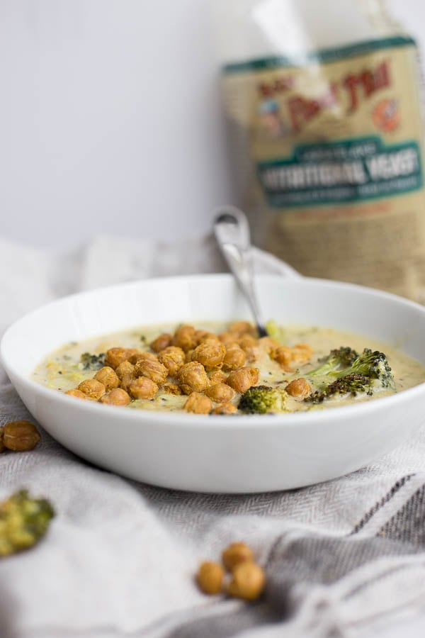 This post is sponsored by my wonderful friends at Bob’s Red Mill! We’re using their Nutritional Yeast for this Vegan Roasted Broccoli & Cheese Soup.