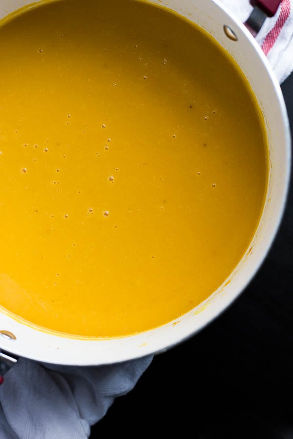 *If you're a huge ginger fan like I am, definitely go with the 3 Tbsp. chopped and peeled ginger. I loved the warming and slightly spicy bite it gave the soup, especially for the cooler fall nights! If you're not a huge ginger fan, you can start out with 2 Tbsp. You can always add more.