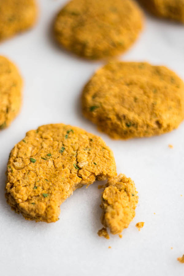 *I like my falafel to have some texture, so I got the mixture fairly smooth with a few chunks. Feel free to blend until smooth if desired. If you’re going that route, you’ll probably need additional oat flour to bind it all together.