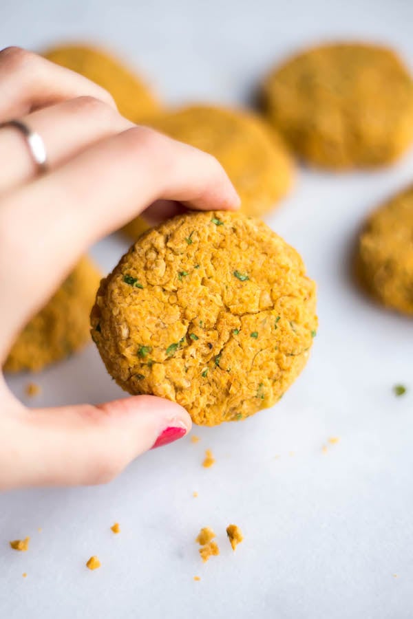 - Mix in oat flour, 1 Tbsp. at a time, until the mixture is dry enough that can easily be shaped into patties. At this point, taste your mixture, and adjust seasoning as necessary.