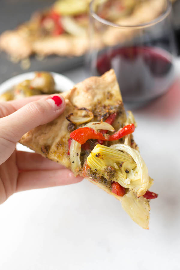 I love that you guys eat pizza on Christmas! Pizza is amazing, well, any day of the year, so why not on Christmas?!? I absolutely adore artichokes and pesto on pizza so I just might have to give this a try! Hope you had a wonderful holiday and a happy new year :)