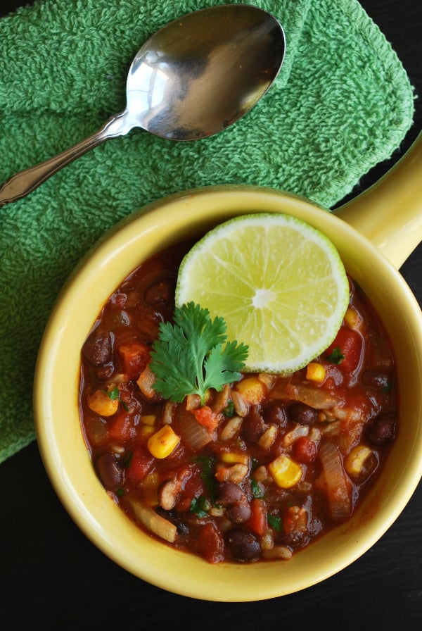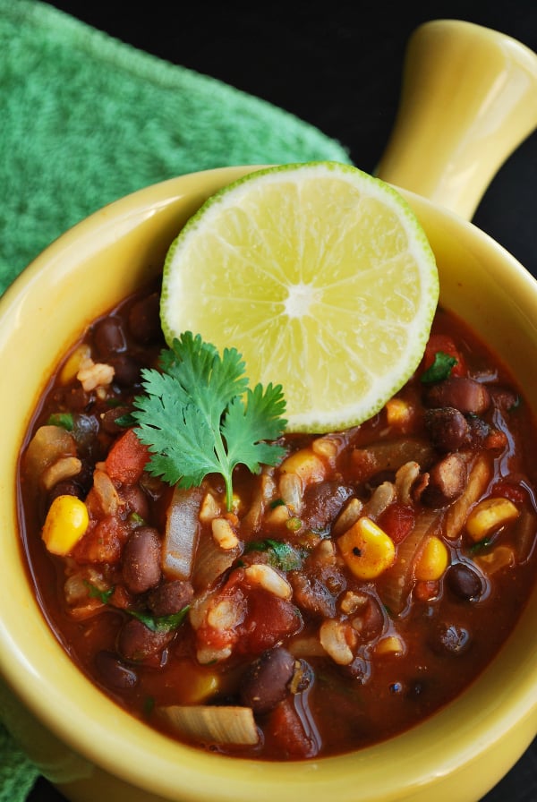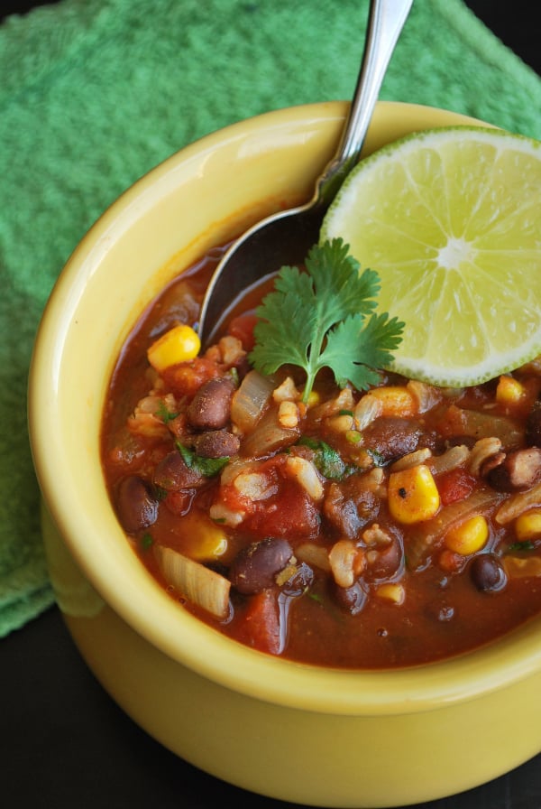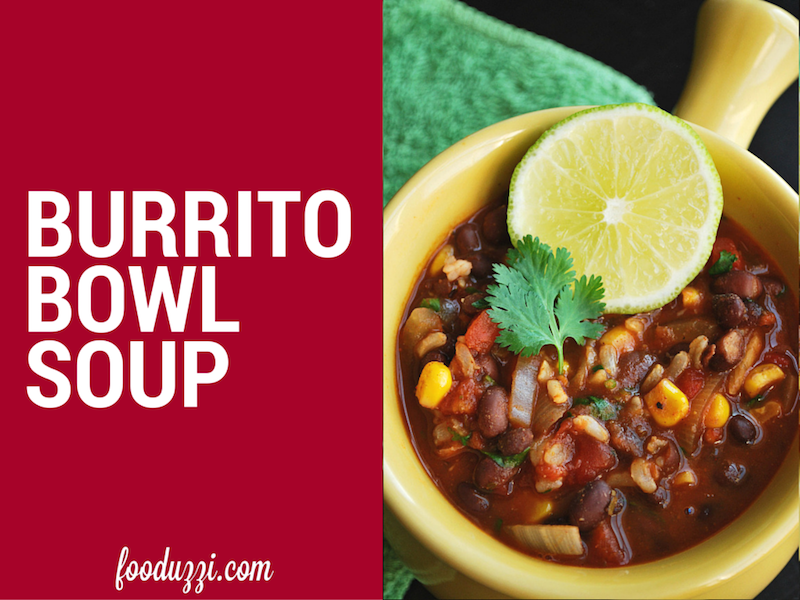 - To serve: Add a scoop of cooked brown rice to a bowl (see post for note). Cover with hot Burrito Bowl Soup. Add lime, cilantro, hot sauce, avocado, etc., and enjoy!