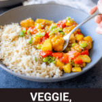 A sweet, tangy pineapple stir fry packed with vegetables and plant-based protein!