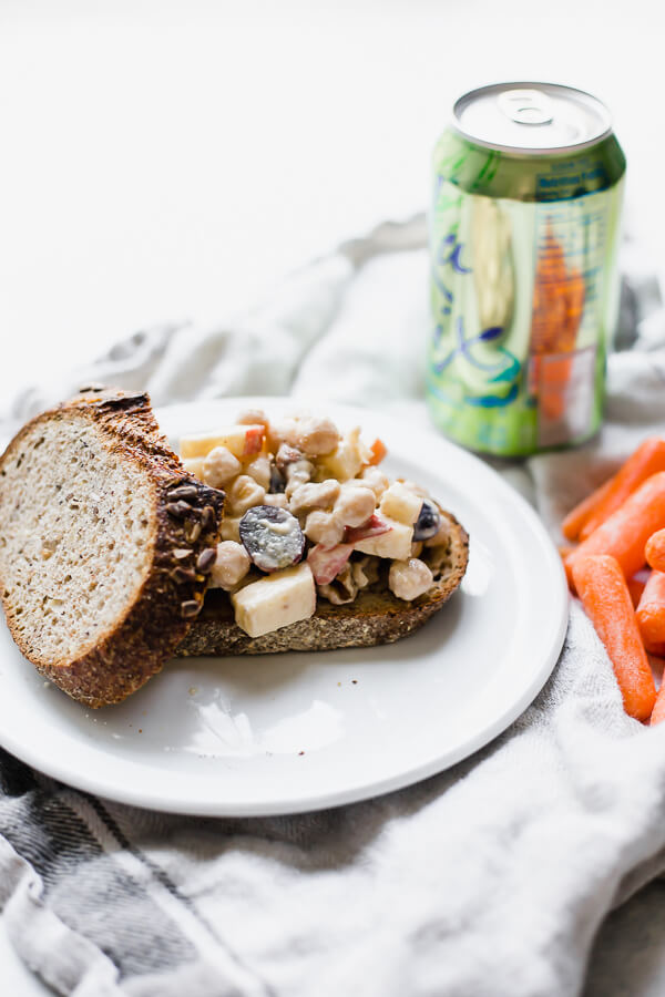 To make it more of a meal (and also because I thought chicken was in the original recipe for some reason…), I added a can of chickpeas! Totally optional, but recommended. I loved the extra texture the chickpeas give the final salad, and it’s great on bread, in lettuce wraps, or on its own!