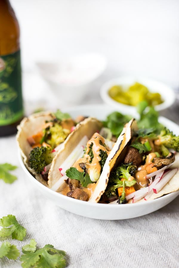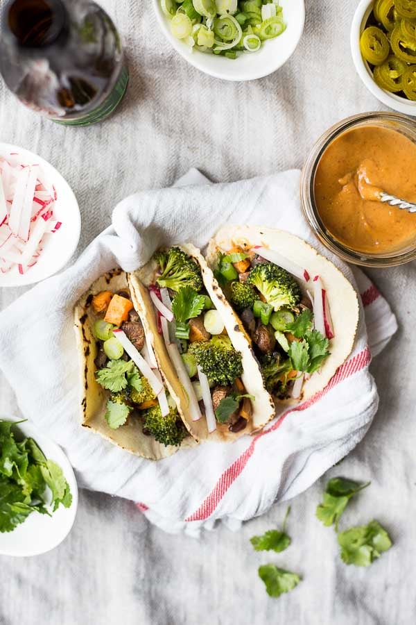 I hope you enjoy these tacos! Especially topped with an extra spoonful of Thai peanut sauce.