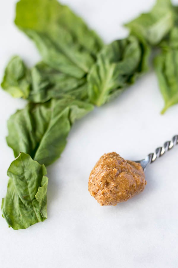 When I first read that there was almond butter in this, I kinda freaked. And then I realized that I make pesto with roasted almonds in it which is basically the exact same thing. ;) Love this!