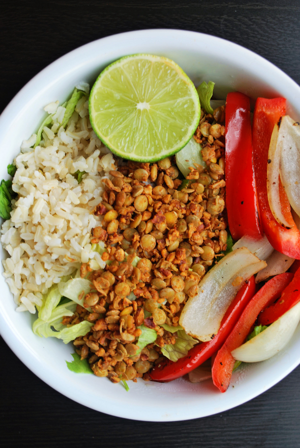 And the possibilities are totally endless. Want tacos? This Lentil Pecan Taco Meat will fit perfectly inside a cozy tortilla. Fancy some fajitas? Sautée up some veggies, boil some rice and beans, and go.to.town. Nacho lover? Mark swears by throwing this mixture on top of some corn tortillas with some cheese and salsa. Or, you could make the classic taco salad with me, topped with all the veggies you could possibly dream of. Um, yes please.