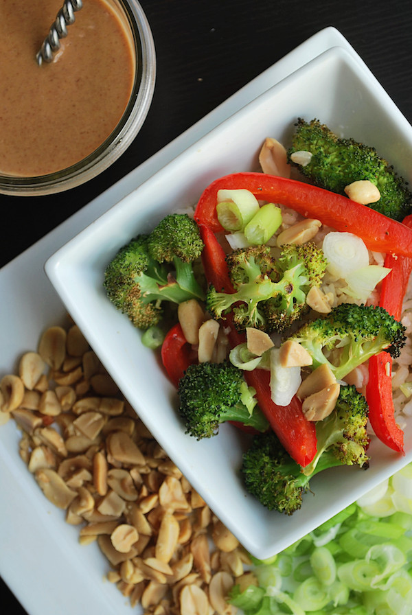 And honestly, the other ingredients are just here to facilitate a more civilized way of getting this homemade peanut sauce into your mouth. Yes, brown jasmine rice is delicious, and yes, roasted vegetables make my heart soar. But this sauce…