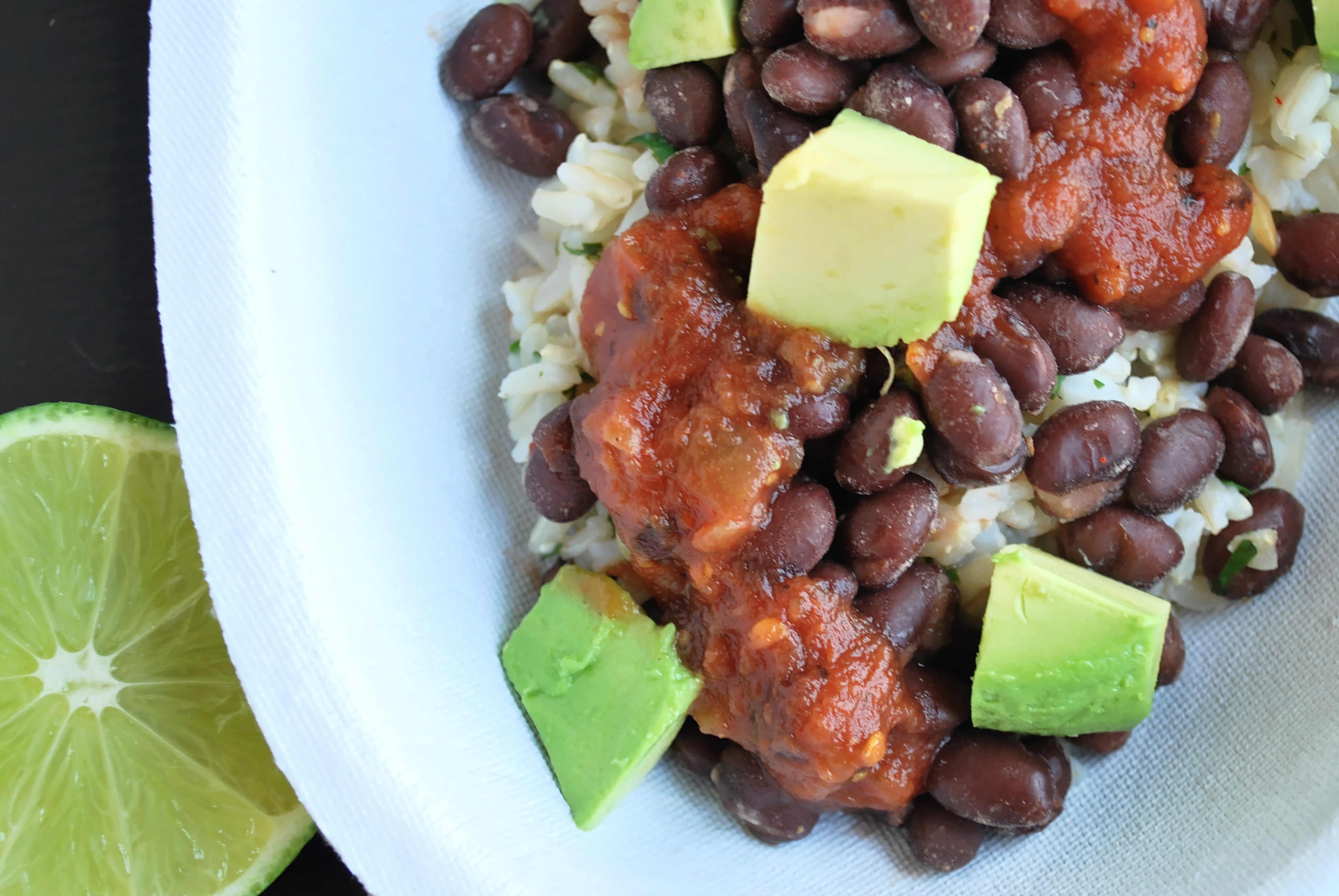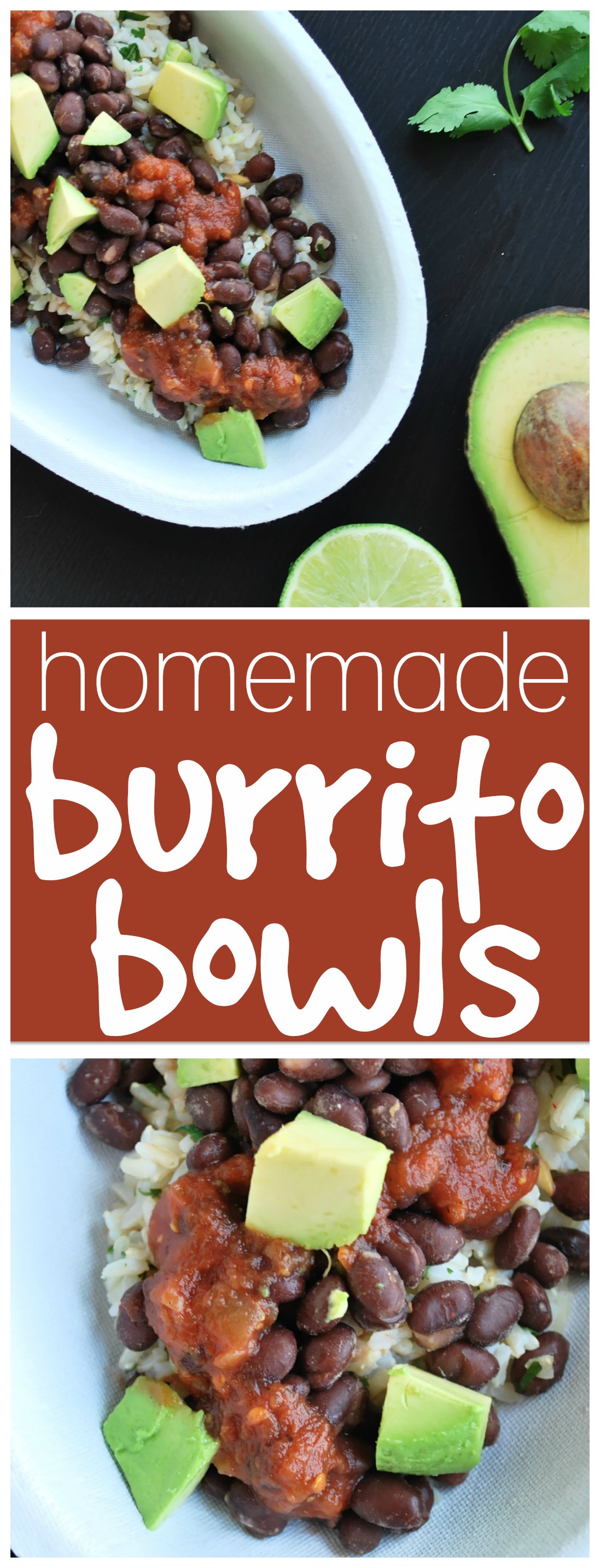 - Assemble your Homemade Burrito Bowl: Divide rice between two bowls. Add black beans on top. Top with salsa, avocado/guacamole, and any other optional ingredients your heart desires.