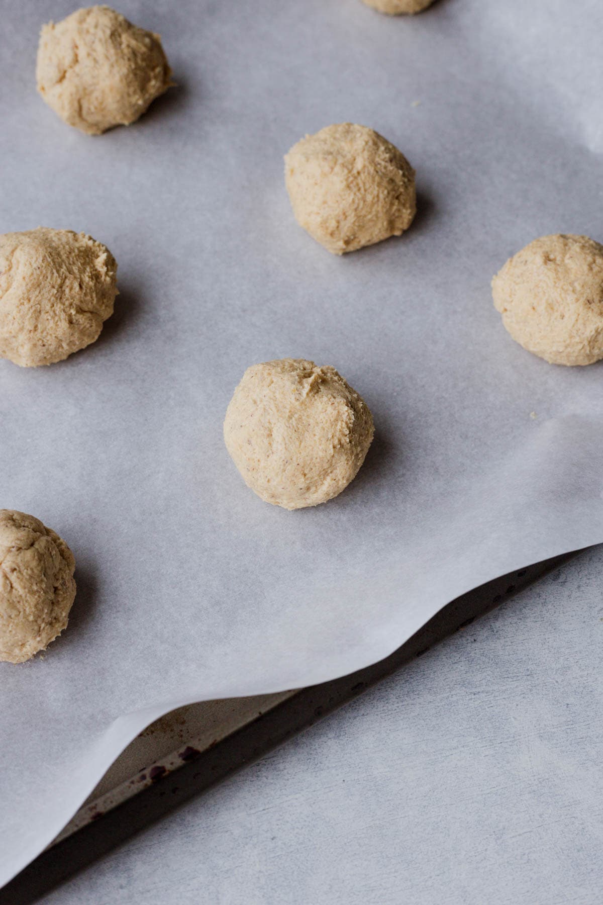 - Place 8 cookie balls on your prepared baking sheet and bake for 6 minutes.