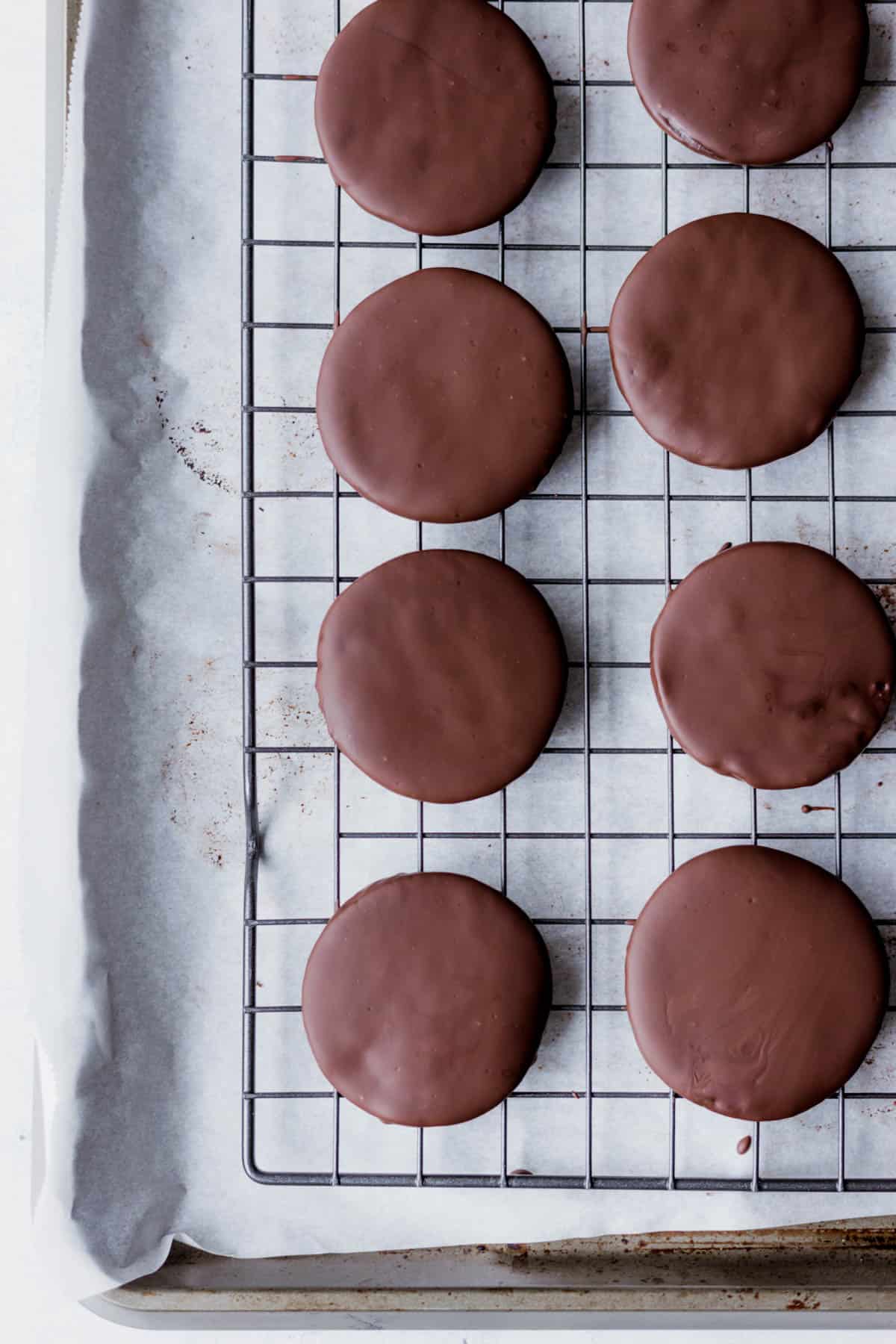 - Allow them to cool completely on the baking sheet. I like to allow the baking sheet to come down to room temperature and then transfer the entire thing into the fridge.