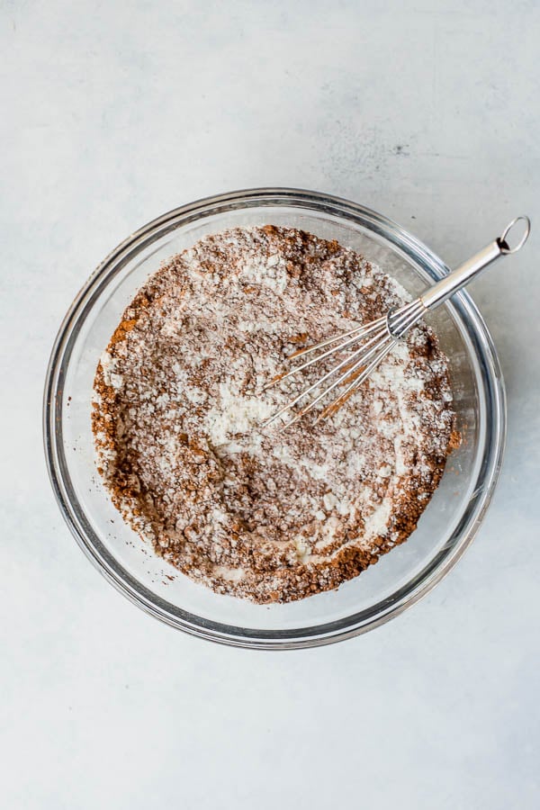 - Meanwhile, combine your flour, cocoa, baking powder, baking soda, and cinnamon in a medium bowl. Whisk to combine.