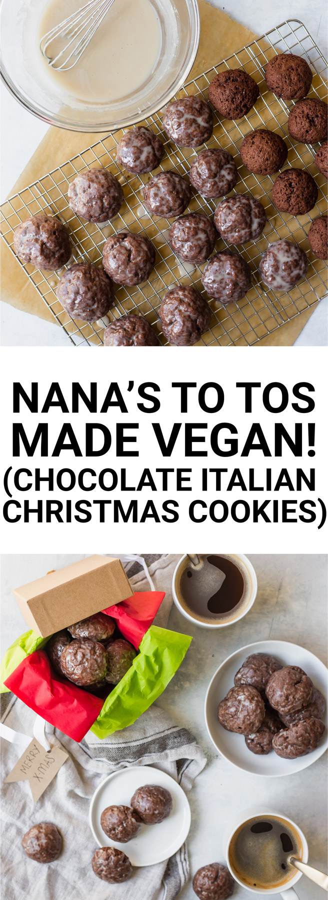 My Nana’s famous Italian To To cookies…made vegan! This is a simple chocolate cookie recipe that requires no chilling and minimal ingredients! Perfect for the holidays.