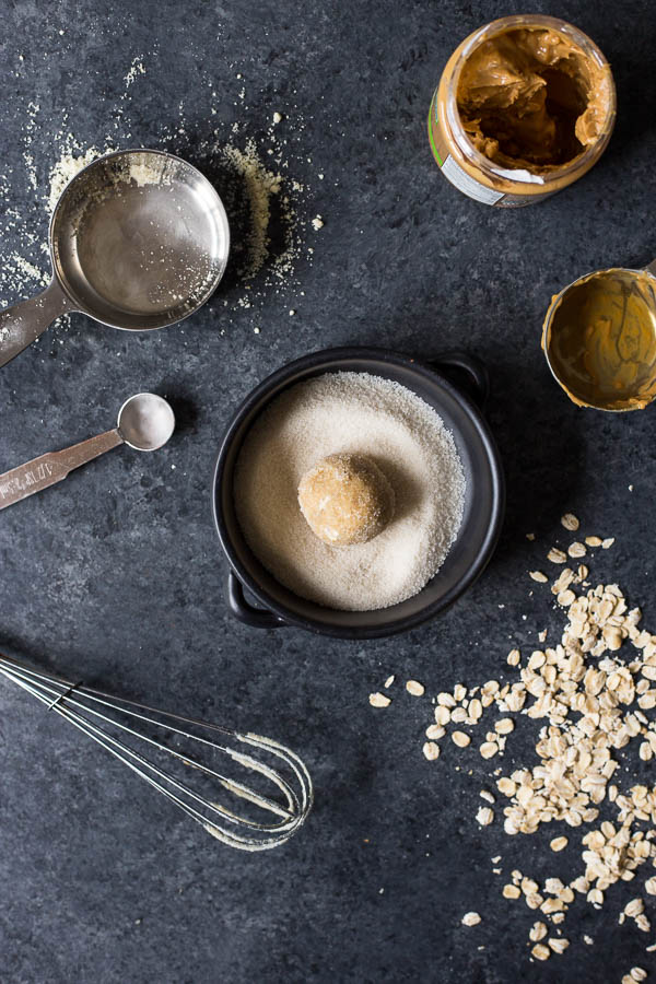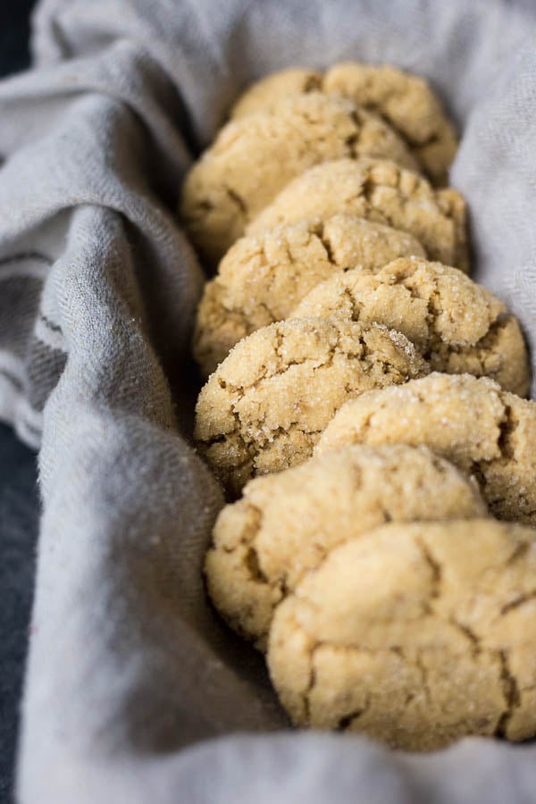 These cookies are based off of one of my favorite non-chocolate cookie recipes: Glazed Molasses Oatmeal Cookies! They have such an addictive chewy texture, and I know it would stand up perfectly to the crunch of the sugar coating on the outside. Plus I added even more crunch via a crunchy almond butter! So yum.