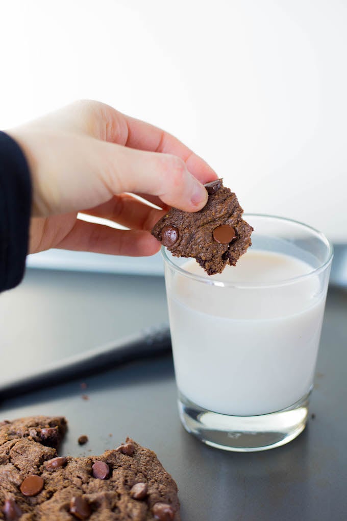 - CHOCOLATE: in two forms – unsweetened cocoa powder and chocolate chips! This recipe can be completely free of refined sugar and dairy if you use the right kind of chocolate chips, so this recipe is a total crowd-pleaser. I used some semi-sweet chocolate chips and loved it, but your favorite chocolate will work just beautifully. If you love your desserts sweet, a milk or even white chocolate chip should be your go to. If you’re into rich and decadent desserts, opt for a semi-sweet or dark chip. Whatever you fancy, you know it’s gonna be delish.