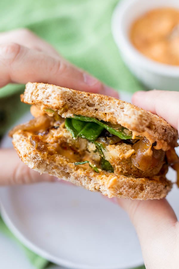 Another relatively new-to-me ingredient, but I’ve quickly fallen in love with the stuff. There is SO much protein in a serving of tempeh, so one sandwich will keep you full all afternoon. It’s amazing. Plus, the sauce is downright drinkable.