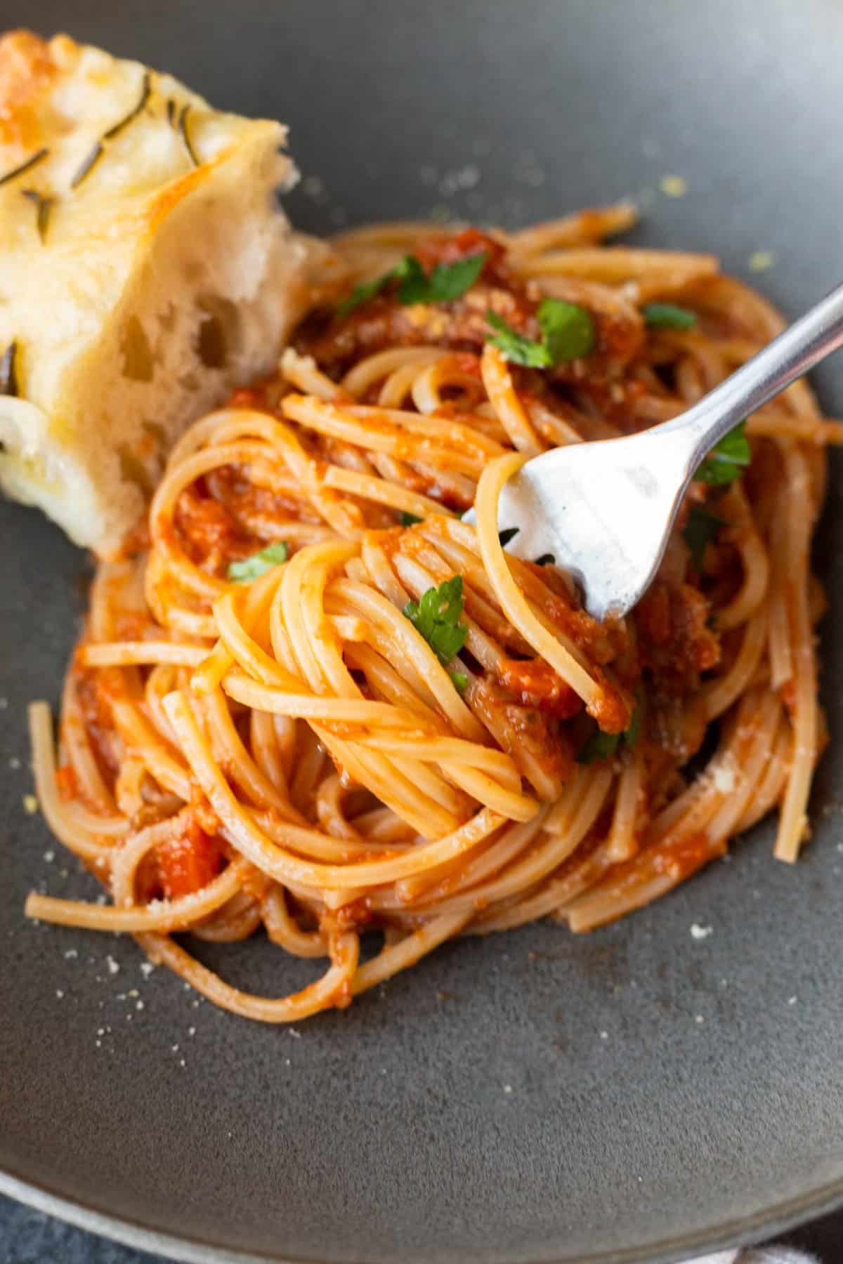 I love recipes like this because it’s very much a low-effort, high-reward sort of recipe. A few key ingredients + time really do result in a sauce that’s rich, has a nice bite, and is perfect with your pasta of choice and a big ol’ slice of crusty bread and/or focaccia.