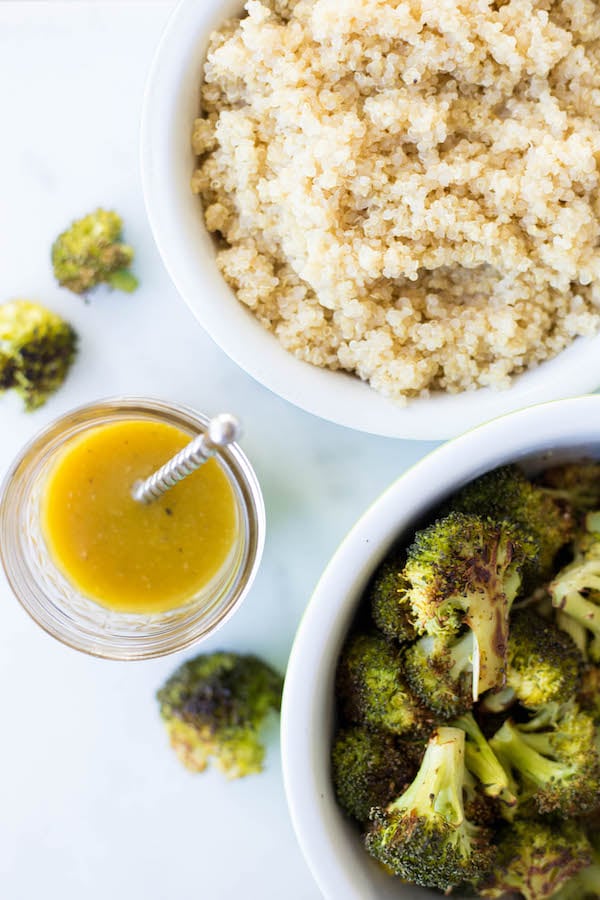 I love roasted broccoli. It’s my favourite way to cook it and it always tastes amazing!! I also love a good quinoa salad – and that dressing!!