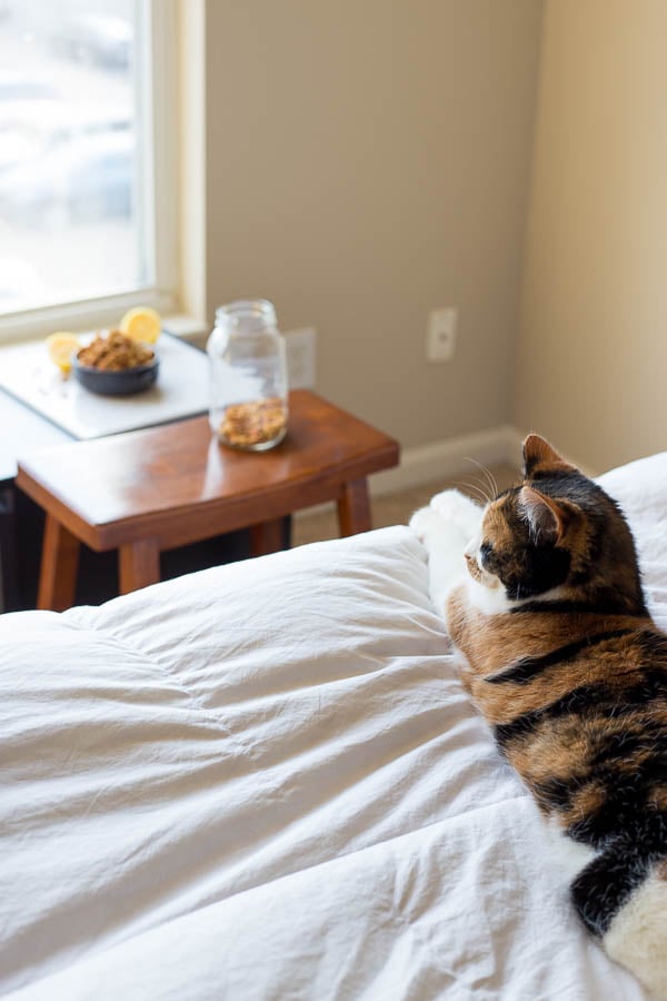 This looks so fresh and bright and citrusy!! Those clumps ahhhh. Your cat is adorable – I love all your Snapchats of her! I’m getting a cat when I move into a new place next year (!!!). Growing up we always had at least 3-4 pets at a time, so not having any furry companion is lonely. Can’t wait for my own little snuggler!