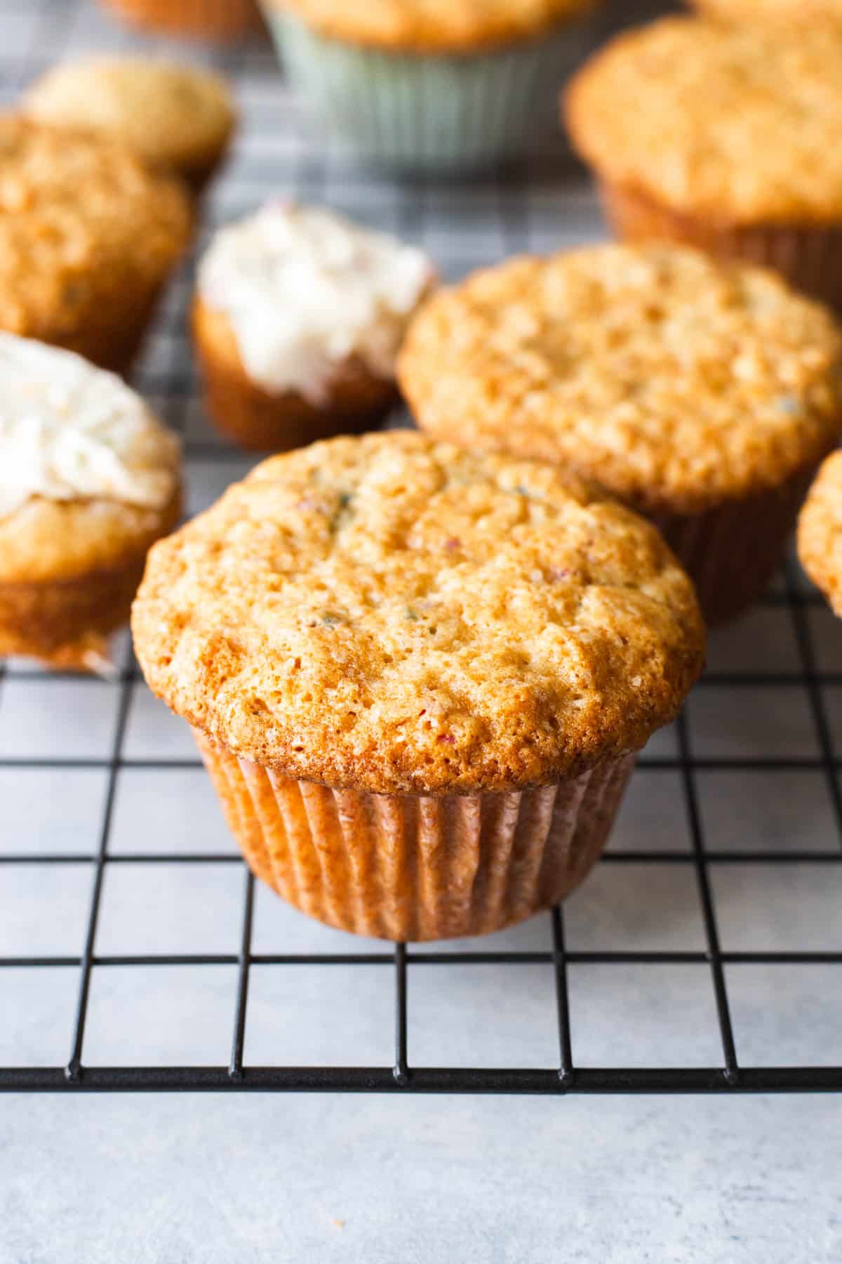 I would also highly recommend you use cupcake liners––I ran out after lining most of the cupcake tin, and even though I greased the tin where I put the rest of the batter, those cupcakes stuck pretty terribly. Trust me: cupcake liners are the way to go here.