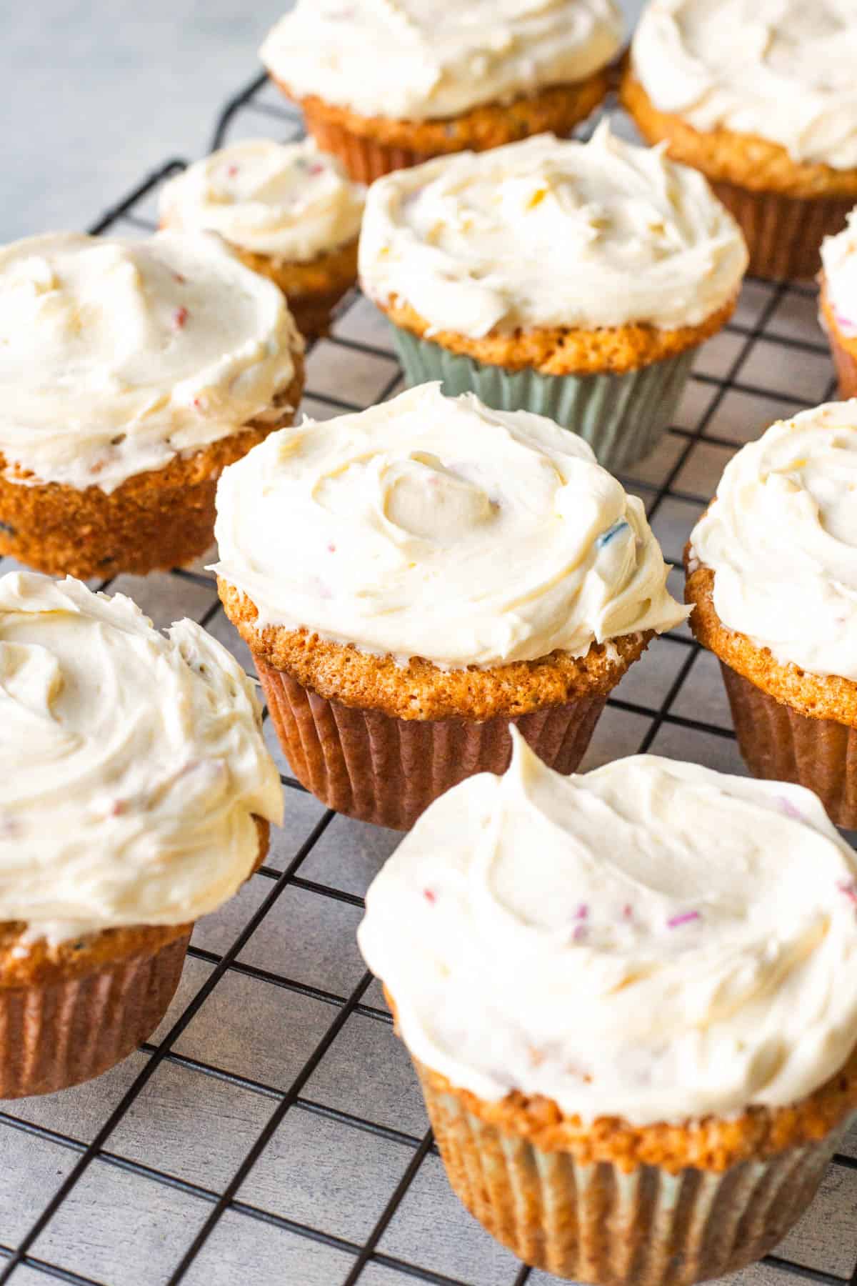 I also wouldn’t mix all of the sprinkles into the frosting at once––it would have been fun to reserve some for topping the cupcakes with before serving for *aesthetic.* That said, the lack of sprinkles on top didn’t stop me or my taste testers.