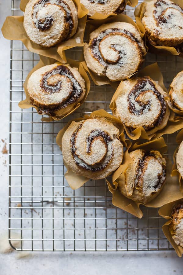 I adore (like, hardcore adore) So Delicious’ Organic Unsweetened Vanilla Coconutmilk. Ahh. It’s great in coffee, but it’s extra great in these cinnamon roll muffins. It’s super thick (or “thiccc” as the cool kids say these days), so it adds a fabulous richness and softness to this dough! Plus, the vanilla flavor lets us omit vanilla extract which has been super $$$$$$$ recently, right?
