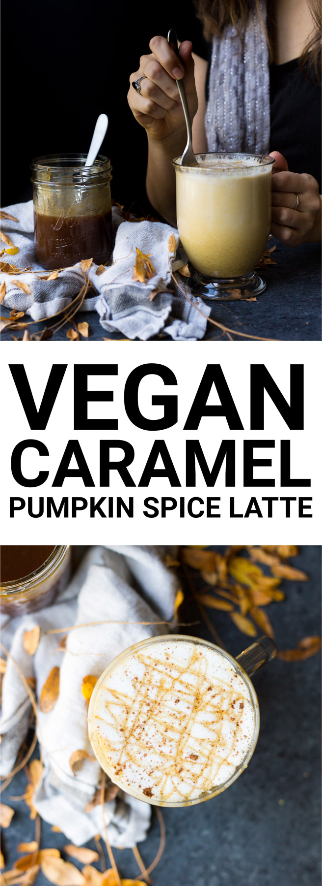 A vegan pumpkin spice latte...with a sweet twist! Pumpkin spice caramel is a delicious addition to this famous fall latte, and it's so simple to make at home!