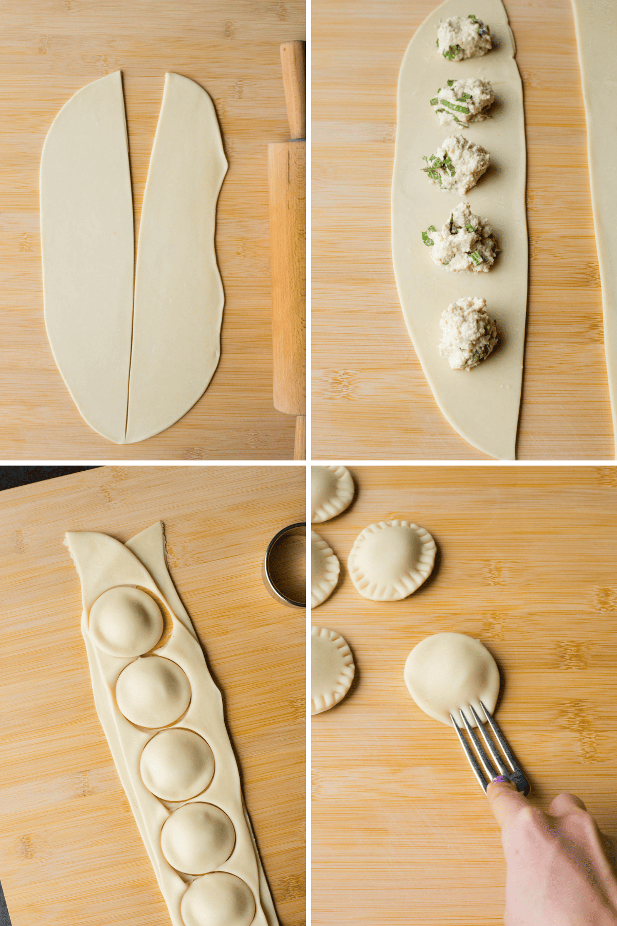 - Repeat the rolling, filling, cutting, crimping, freezing process with your other half of the dough.**