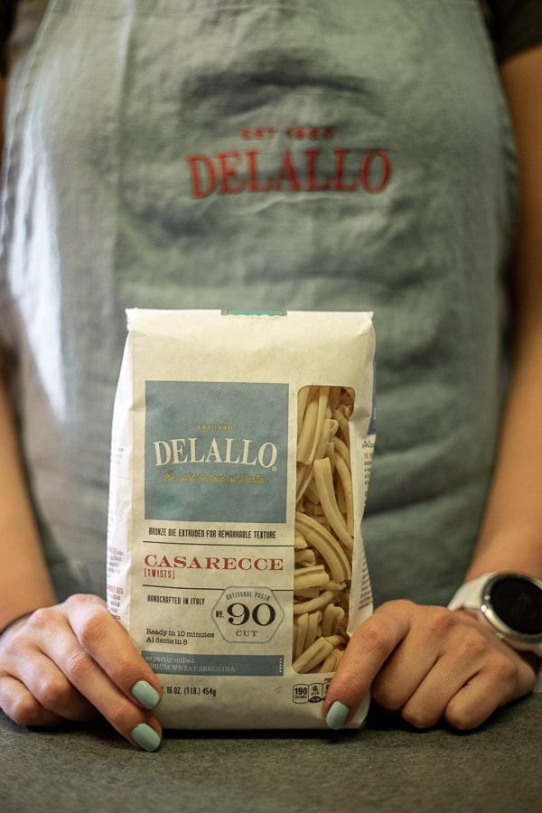 This new pasta from DeLallo is so cool, especially for food nerds like me. Not only does it actually come from Italy (near Naples, actually!), it’s extruded with bronze dies. That sounds intense. I know. But all you need to know is that it creates a rougher texture on the pasta, which is ideal for capturing just the right amount of sauce in every bite.