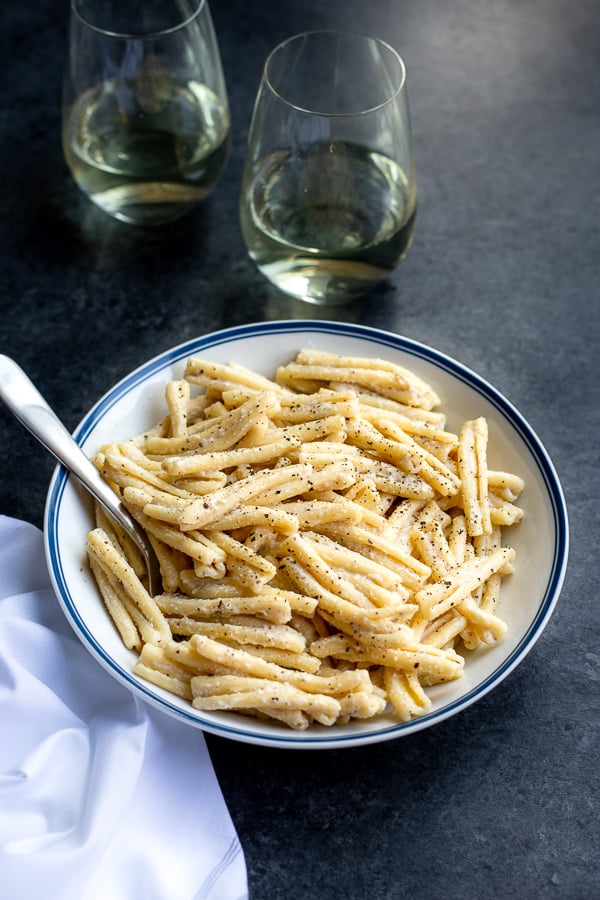 Cacio e Pepe is one of my very favorite pasta recipes to make because it’s just so gosh-darn simple. It translates to “cheese and pepper,” and that’s basically all it is (plus some butter and pasta water to make the sauce all velvety and luscious).