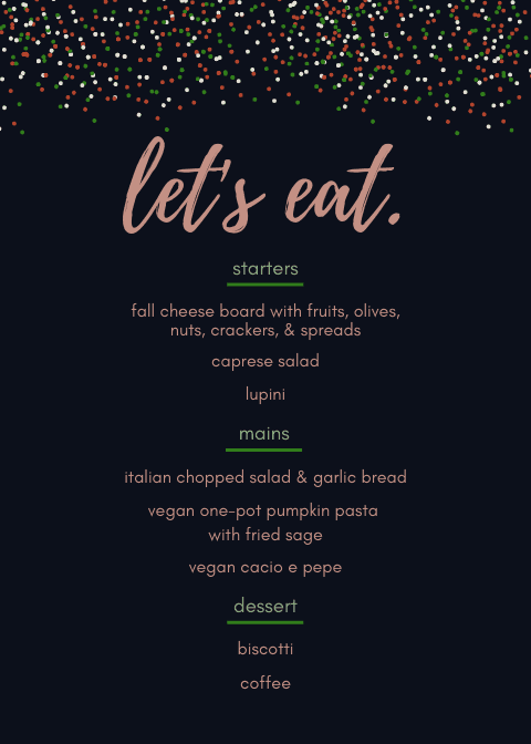 We had drinks! We had salad! We had snacks! We had dessert! But most importantly, we had pasta.
