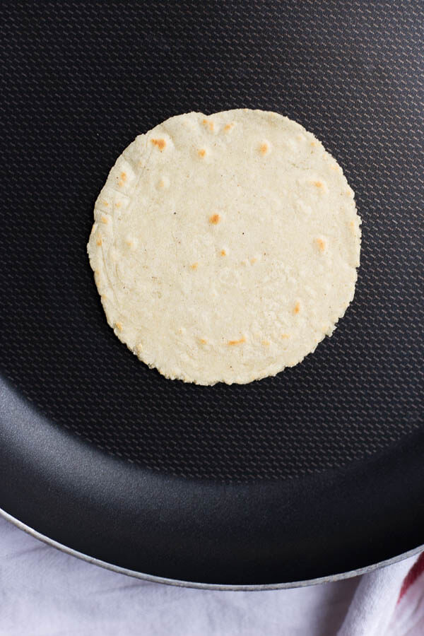 - Cook each side for about 30 seconds, flipping in-between. I flip the tortilla twice so that the first side cooks twice and gets those lovely brown caramelized spots. Those brown spots are good, but don't overcook the tortillas so that they're crispy.