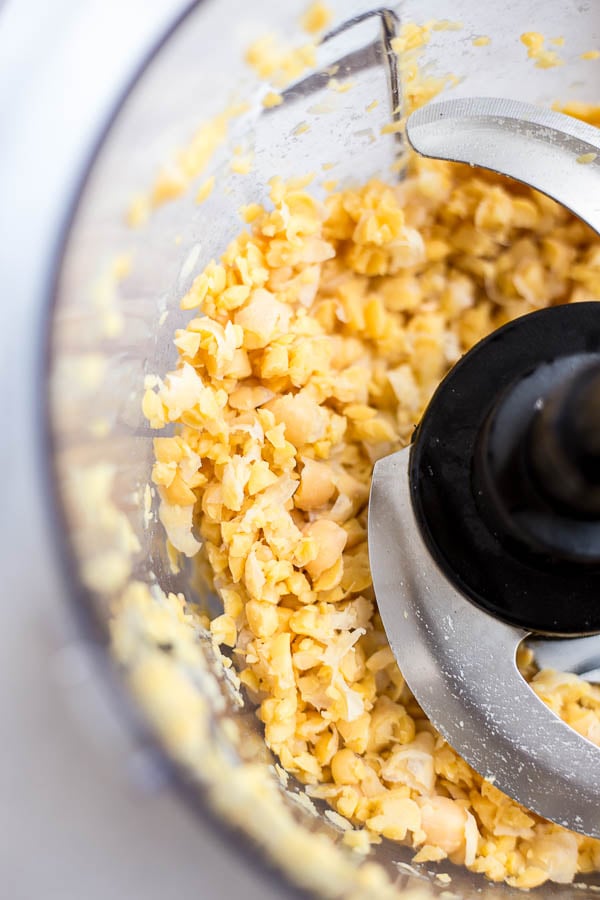 Tried this with canned soy beans. Didn’t work at all. It all turned to mush when I tried to (gently) chop it in my food processor. Had whole beans still, but more than half was just a smooth paste… Will try with chickpeas next time!