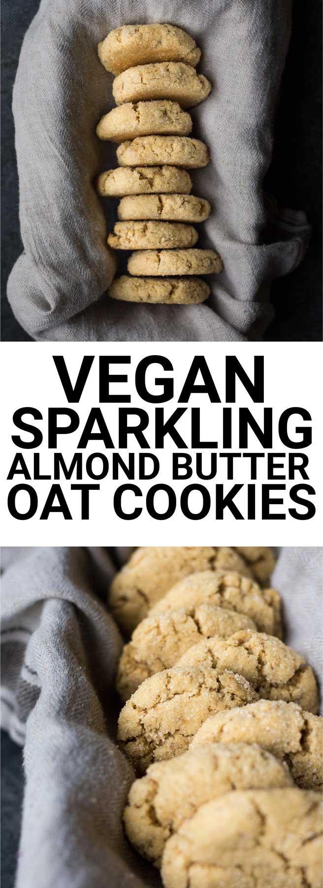 [This post is sponsored by my wonderful friends at Bob’s Red Mill! We’re using their Gluten Free Old Fashioned Rolled Oats for these Sparkling Vegan Almond Butter Oat Cookies.]