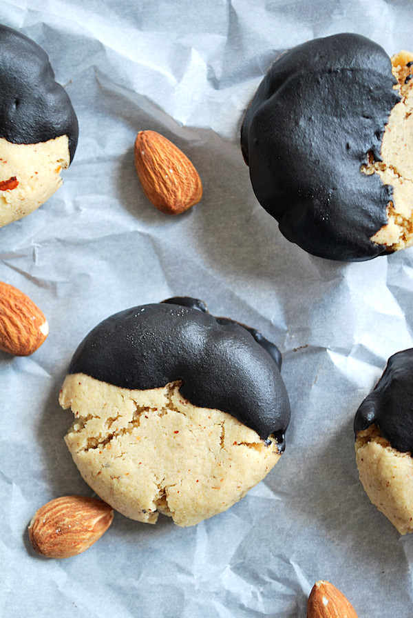 PrintFudge-Dipped Almond Cookies [gluten free, vegan]